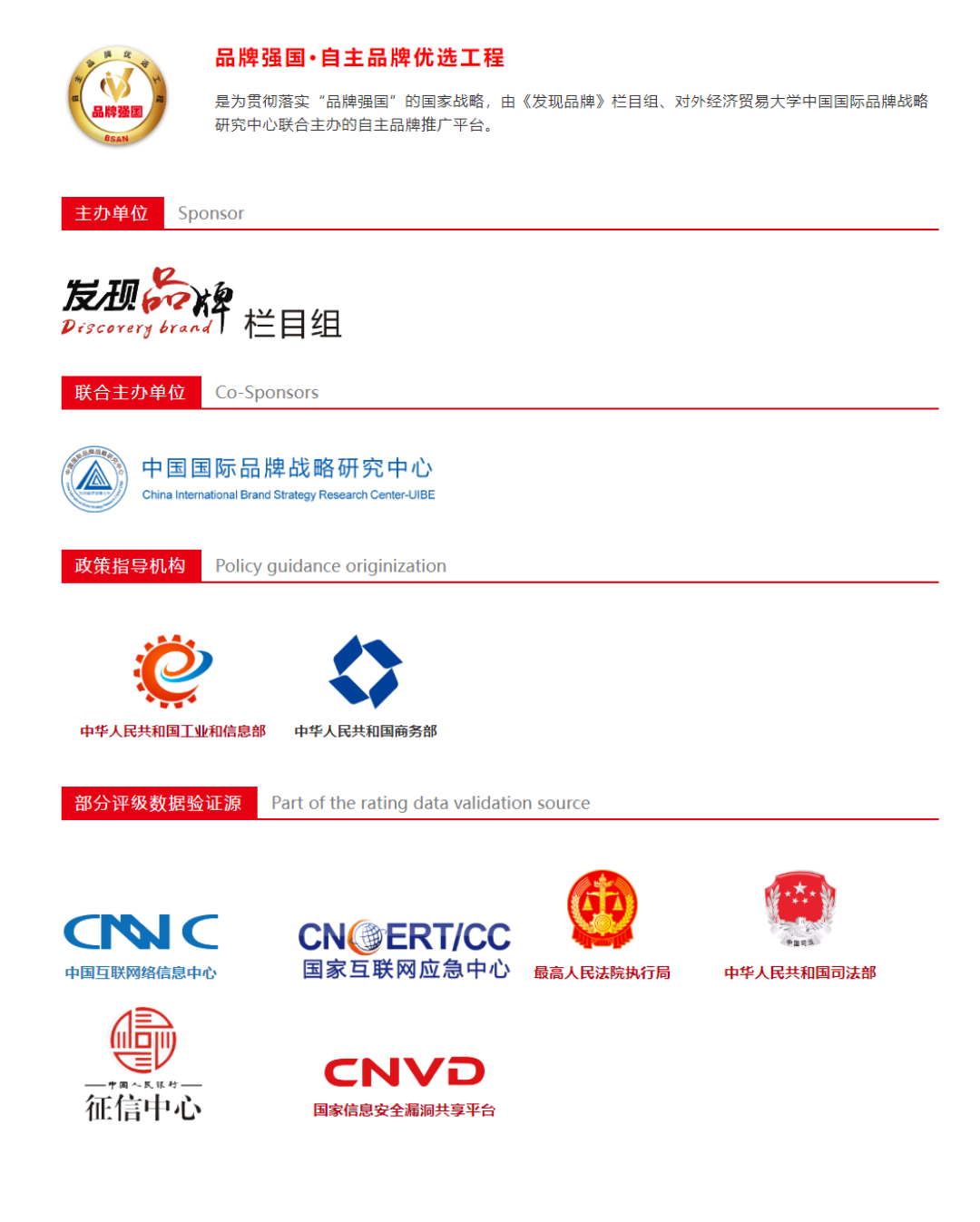 品牌强国·自主品牌优选工程(简称“品牌强国优选工程”),是为贯彻落实“品牌强国”的国家战略,由《发现品牌》栏目组、对外经济贸易大学中国国际品牌战略研究中心联合主办的自主品牌推广平台。推动品牌信用建设影响力,提高中国企业的国际竞争力,助力中国品牌走向世界而发起。